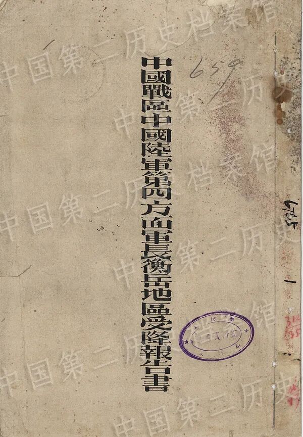 中国战区中国陆军第四方面军长衡岳地区受降报告书封面。