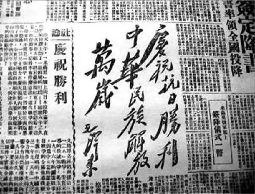 1945年9月3日,《新华日报》刊登毛泽东庆祝抗战胜利的题词。