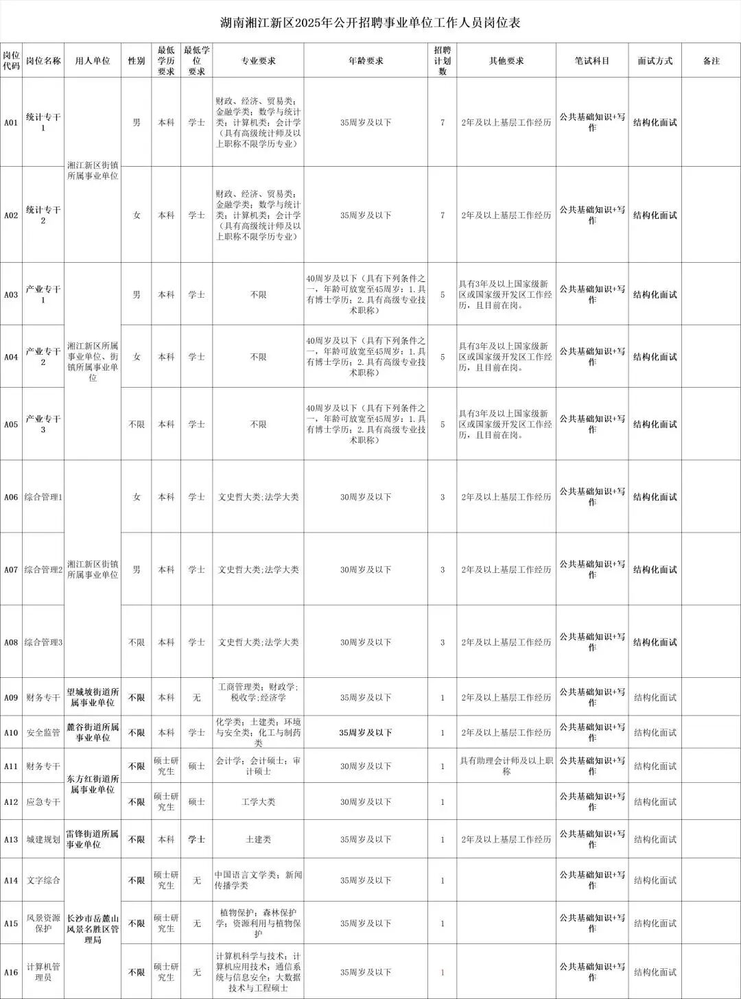 湖南湘江新区发布2025年公开招聘事业单位工作人员公告