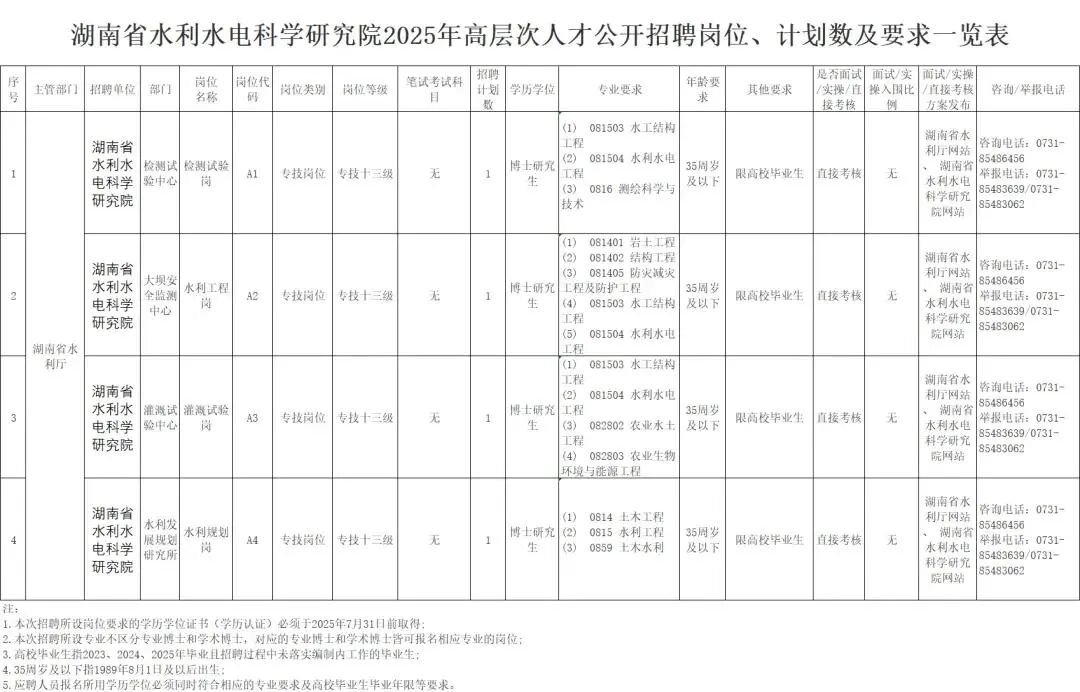 湖南省水利水电科学研究院2025年高层次人才公开招聘公告