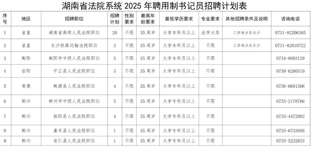 湖南省法院系统2025年公开招聘聘用制书记员公告