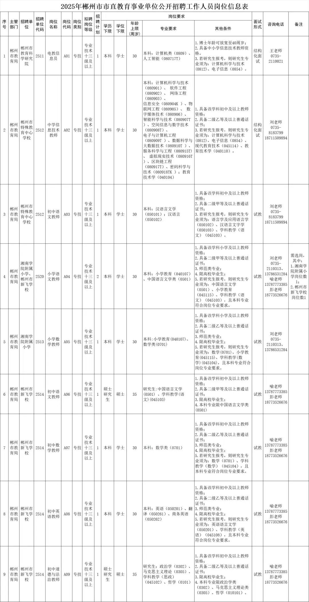 2025年湖南郴州市市直教育事业单位招(选)聘79人公告