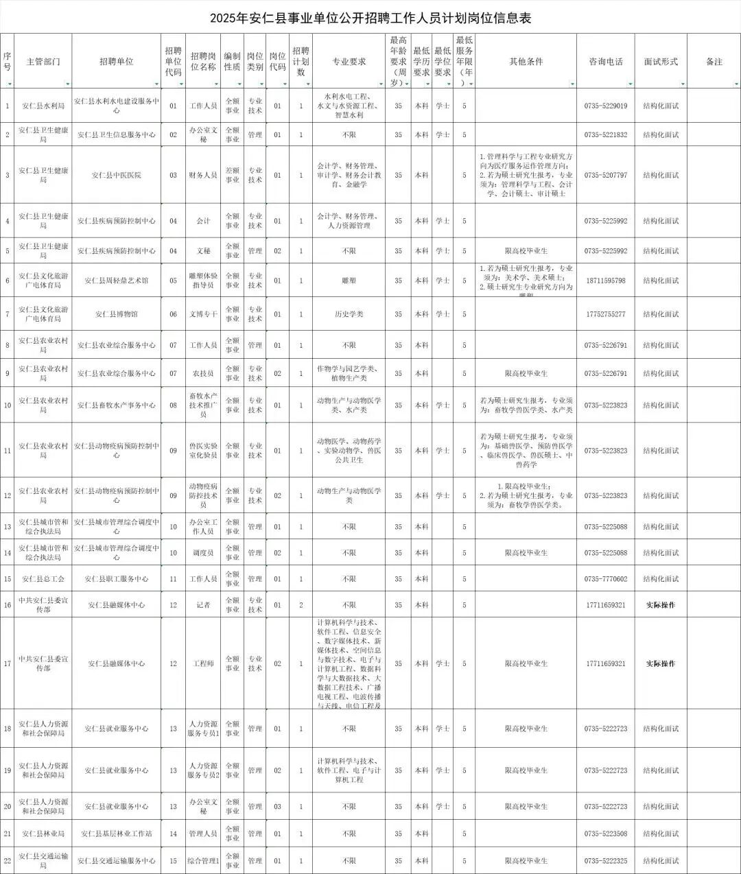 2025年湖南郴州安仁县事业单位招聘63人公告