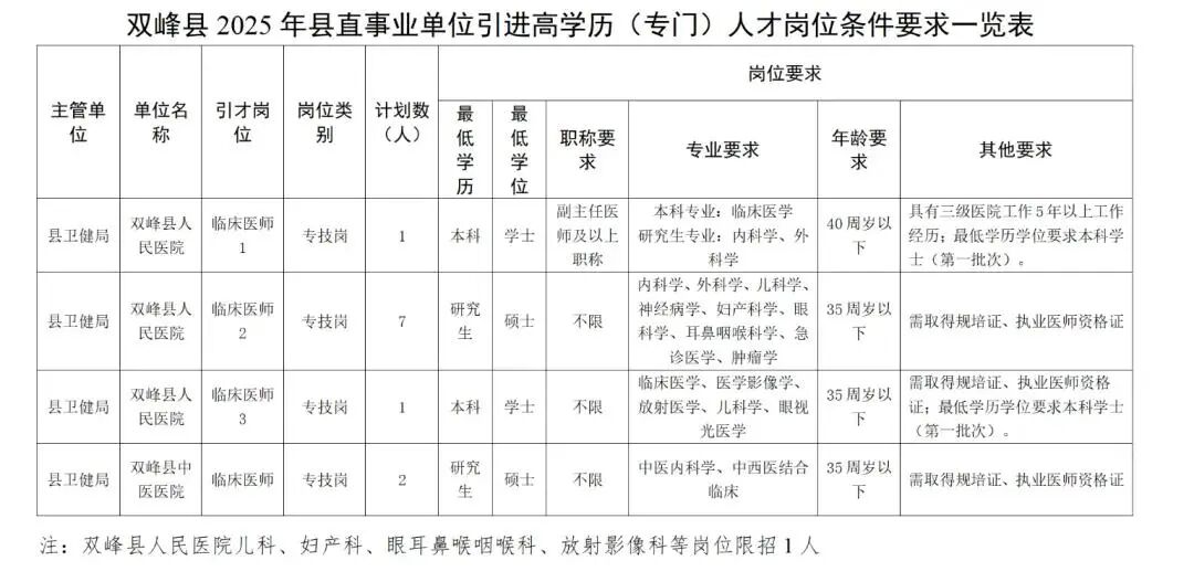 双峰县2025年县直事业单位引进高学历(专门)人才补充公告