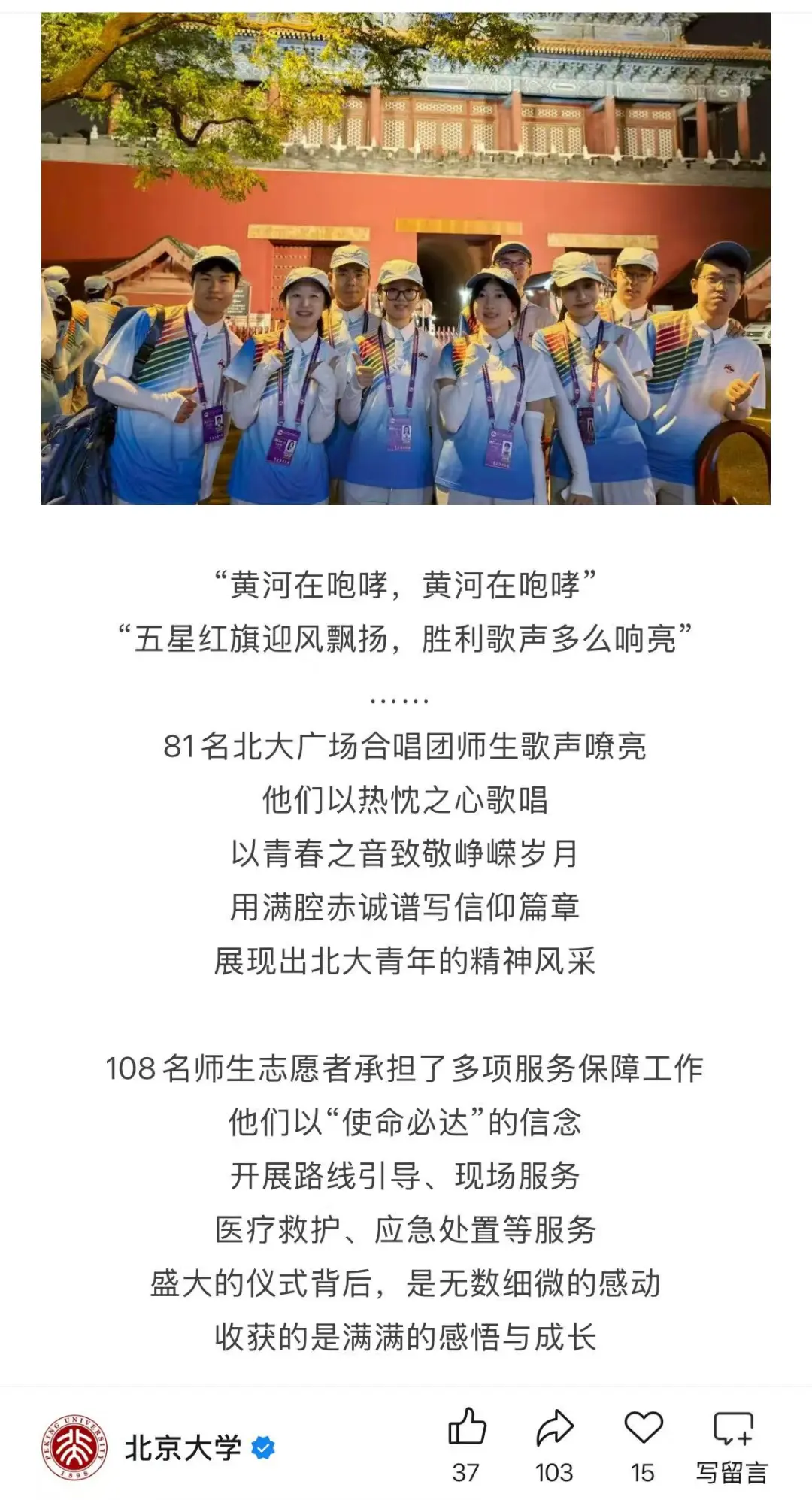 除合唱团外,112名北邮志愿者