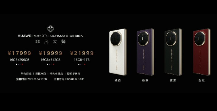 华为三折叠Mate xTs非凡大师售价17999元起,支持手写笔、折叠键盘,首次将PC软件装入手机