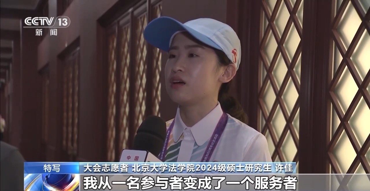 大会志愿者 北京大学法学院2024级硕士研究生 许佳:肯定是希望自己能够有机会站在观礼台上,我的服务点位是在固定观礼台下,是在背靠观众座席的方向,所以我是没有办法看到大会现场的。