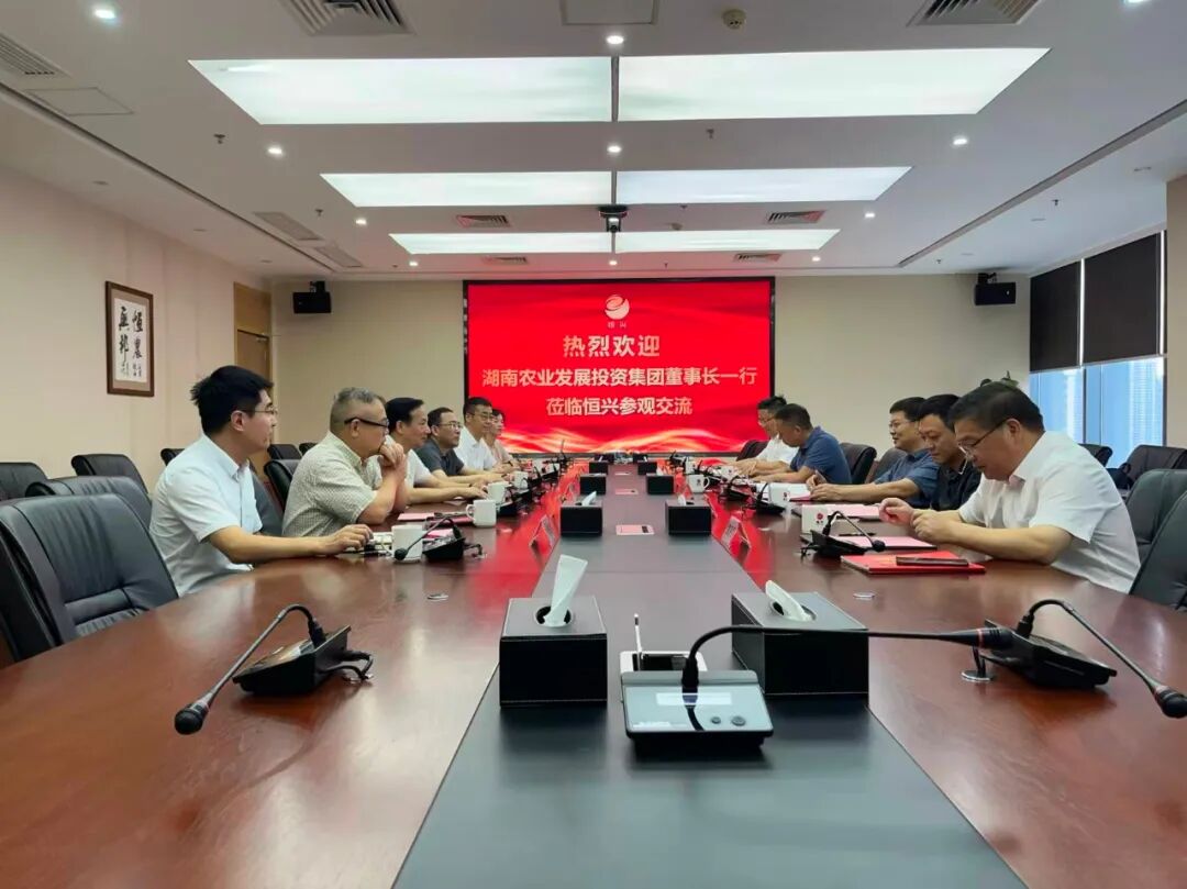 日前,湖南农业集团党委书记、董事长龚小波率队赴广东恒兴集团开展调研,党委委员、副总经理李恒毅参加调研。