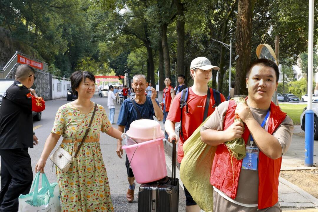 “同学,我带你过去!”“这里是学校的图书馆!”校园里,身着红色马甲的志愿者们成为一道亮丽的风景线。财务管理专业的大三学生陈熙霖来自国旗护卫队,负责学校西南门附近的交通疏导工作。尽管天气炎热,但她表示,“能为新生和家长们服务很开心,我也感受到了大家的善意、体谅与互助,帮到他们时特别有成就感。”