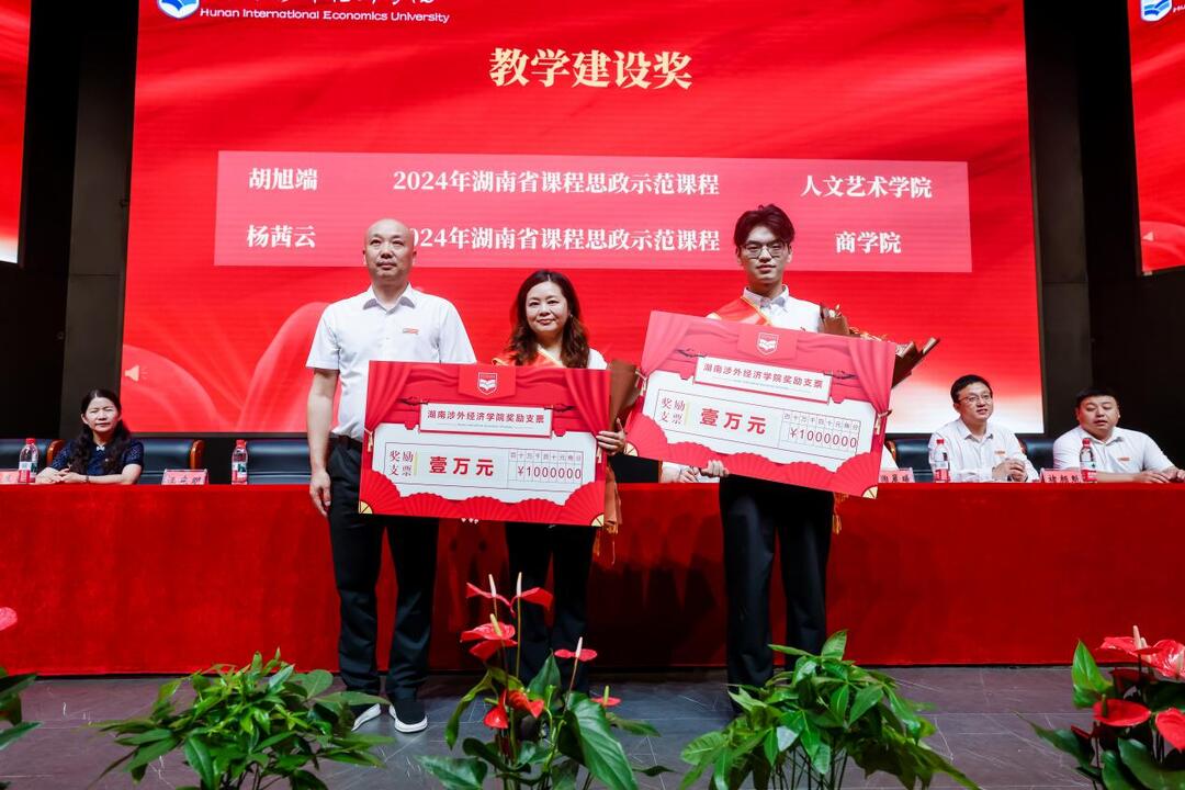 陈斌公布2025年师德先进个人、教学建设奖、教学竞赛奖、学科竞赛奖、教学管理奖、考研工作专项奖、优秀科研成果奖的获奖名单,校领导分别为获奖教师颁奖。