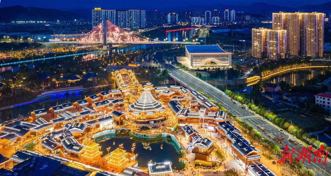 夜幕降临,㵲水两岸亮了。天问岛、榆树湾文旅商综合体、东盟集、荆坪古村等文旅新地标沿河而立,烟火袅袅、人声鼎沸。
