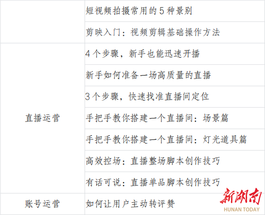 (二)课程内容及形式:课程分为AI创作、短视频直播运营两部分。AI创作部分,从AI原理解析出发,讲解常见AI大模型在短视频直播领域的应用实操;同时以学员抖音账号运营水平为基础,设为“新手突击营”“千粉进阶营” “万粉特训营”三个课程专题,每个专题包含15至20节精品视频课,分别覆盖规则规范、视频制作、直播电商、店铺 运营、流量运营等技能板块。