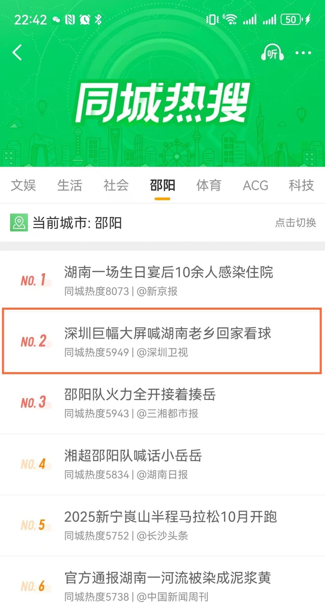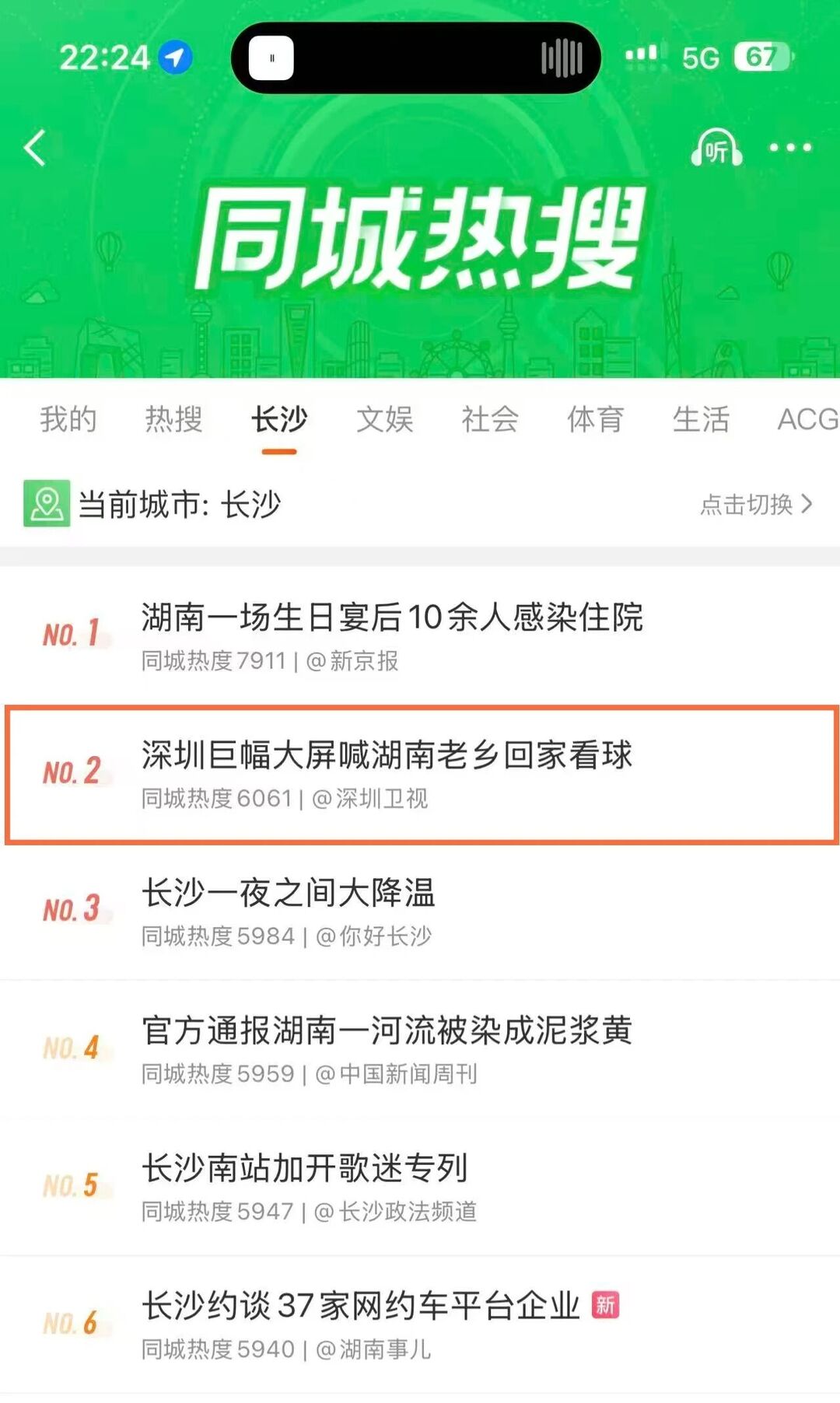 郴州又㕛叒叕上热搜!深圳城市大屏点亮“湘超”——“乡愁是一张9.8元的‘湘超’球票”