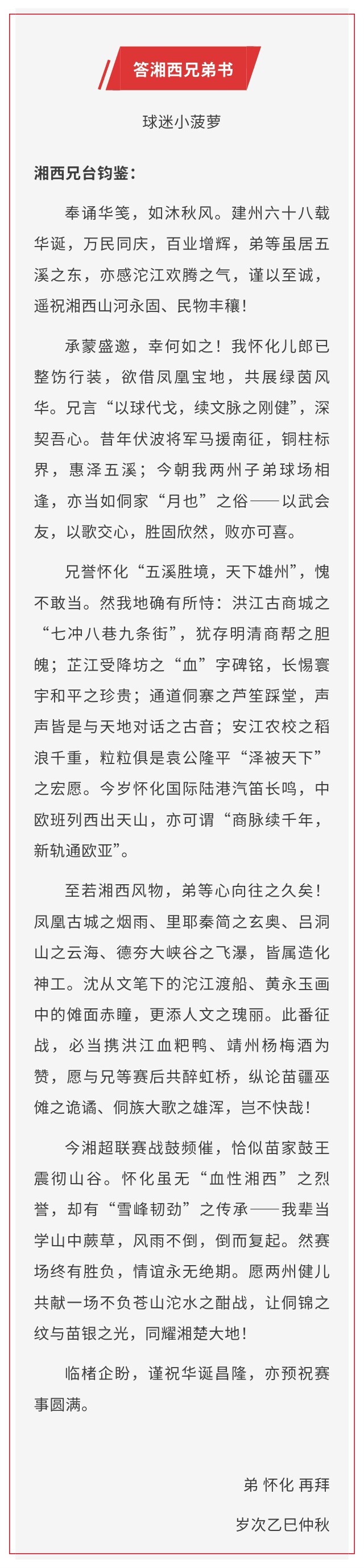 《答湘西兄弟书》——大战在即 先礼后兵