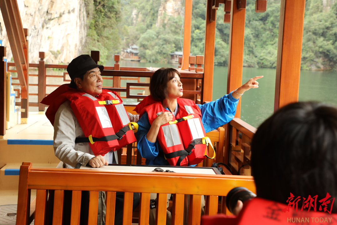 景区内,众人乘船欣赏宝峰湖“峰在水中立,水绕峰间流”的湖光山色,同时聆听桑植民歌传承人、张旅集团常务副总金鑫献唱桑植民歌并分享桑植民歌的文化底蕴,让韩国拍摄团队直观感受张家界的自然之美与文化厚度。