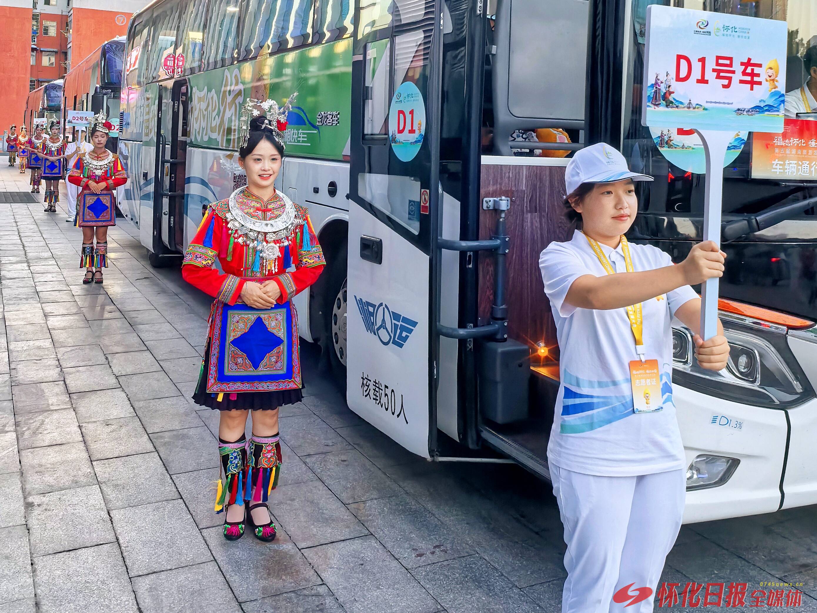 9月17日清晨6时,天光微亮,各集结点已是一派忙碌景象。身着统一制服的讲解员精神抖擞,在妇联联络员的组织下有序集合。化妆师细致补妆,联络员逐一点名并核对行程。8时许,22台观摩车缓缓驶出酒店驻地,讲解员在车内微笑致意,清亮的声音伴随轻柔的音乐响起:“尊敬的各位领导、各位嘉宾,大家上午好!三湘四水,相约湖南!福地怀化,懂你如家!热烈欢迎各位莅临‘懂你如家’的福地怀化……”
