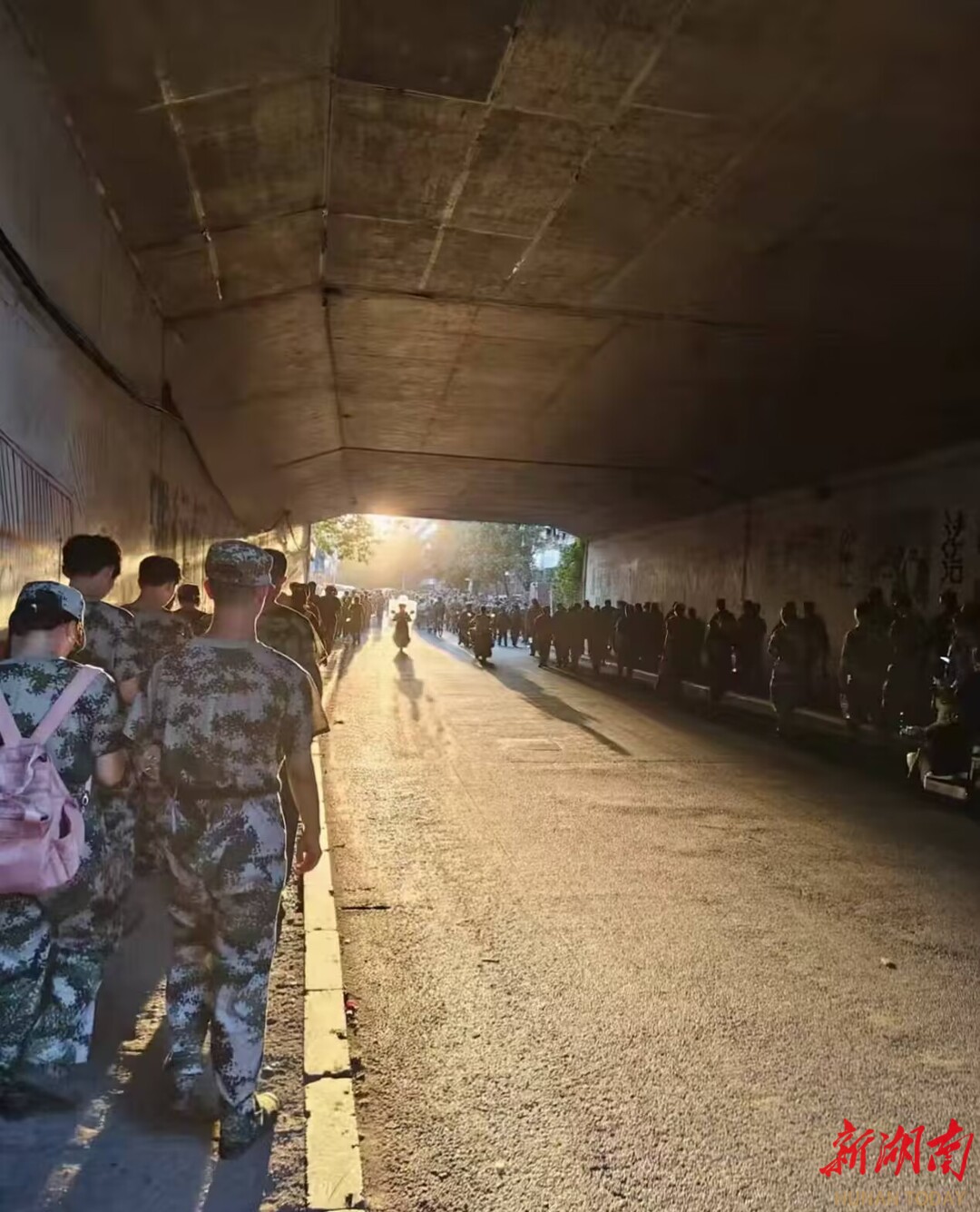 除了让我成长的训练,一些温情时刻也在悄然发生。宿舍里,舍友热情地与我分享零食,讲述湖南的风情美食,驱散了身处异乡的无措。训练场上,有人呕吐时,陌生的同学用一声声“报告”寻求教官帮助,语气尽显着急与担忧,当同学被扶去阴凉处休息后,教官默默擦去草地上的呕吐物。烈日高照,老师班助来到操场与我们一起在烈日下坚持,等到我们下训,他们将凉爽的水果放入我手中时,心中的温暖和喜悦难以言表。晚上我们围坐在一起共唱《祖国不会忘记》,歌词中对祖国深沉的爱轻轻地打开了每个人的心门,灯光下,每个人都奋力歌唱,声振寰宇。回想军训,那些一起晒过的太阳、一起喊过的口号、一起走过的路,都成了最珍贵的回忆。