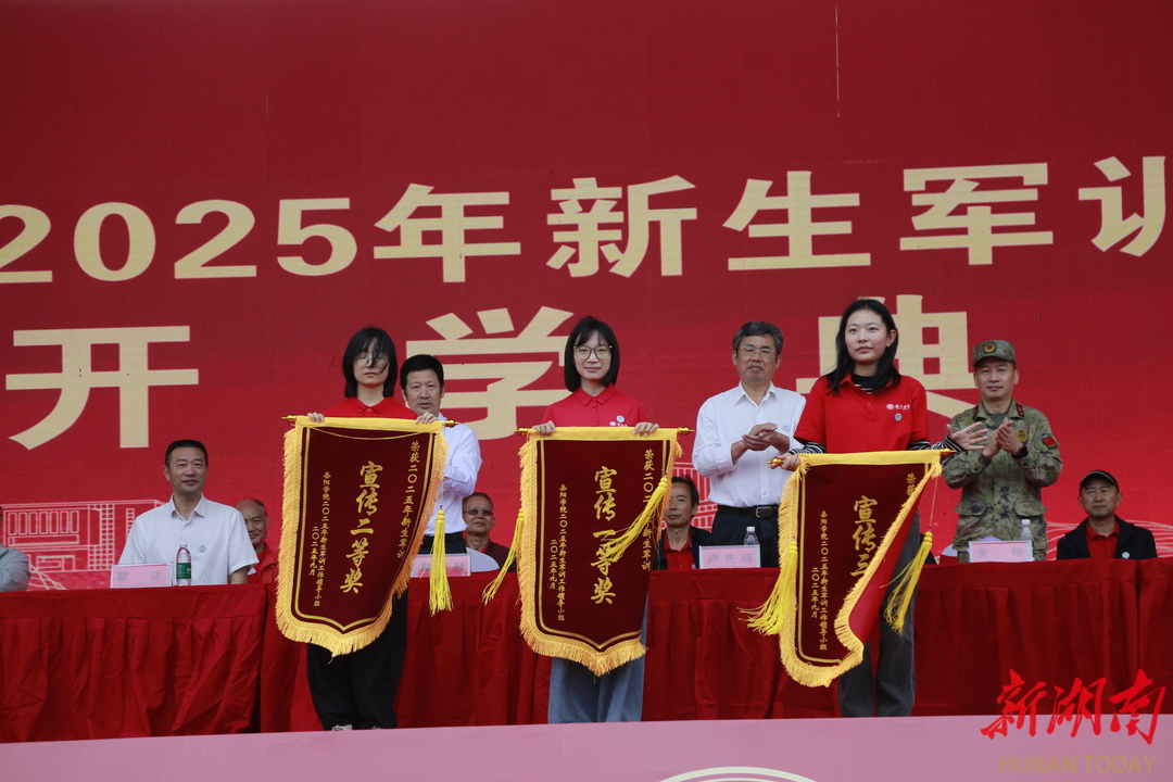 岳阳学院党委专职副书记戴文慧宣读军训表彰决定,表彰颁奖分6轮有序进行,先进集体与个人上台领奖。副校长黎定军主持本次总结汇演活动。此次汇演不仅检验军训成果,更让学子坚定理想信念,为大学生涯奠定基础。