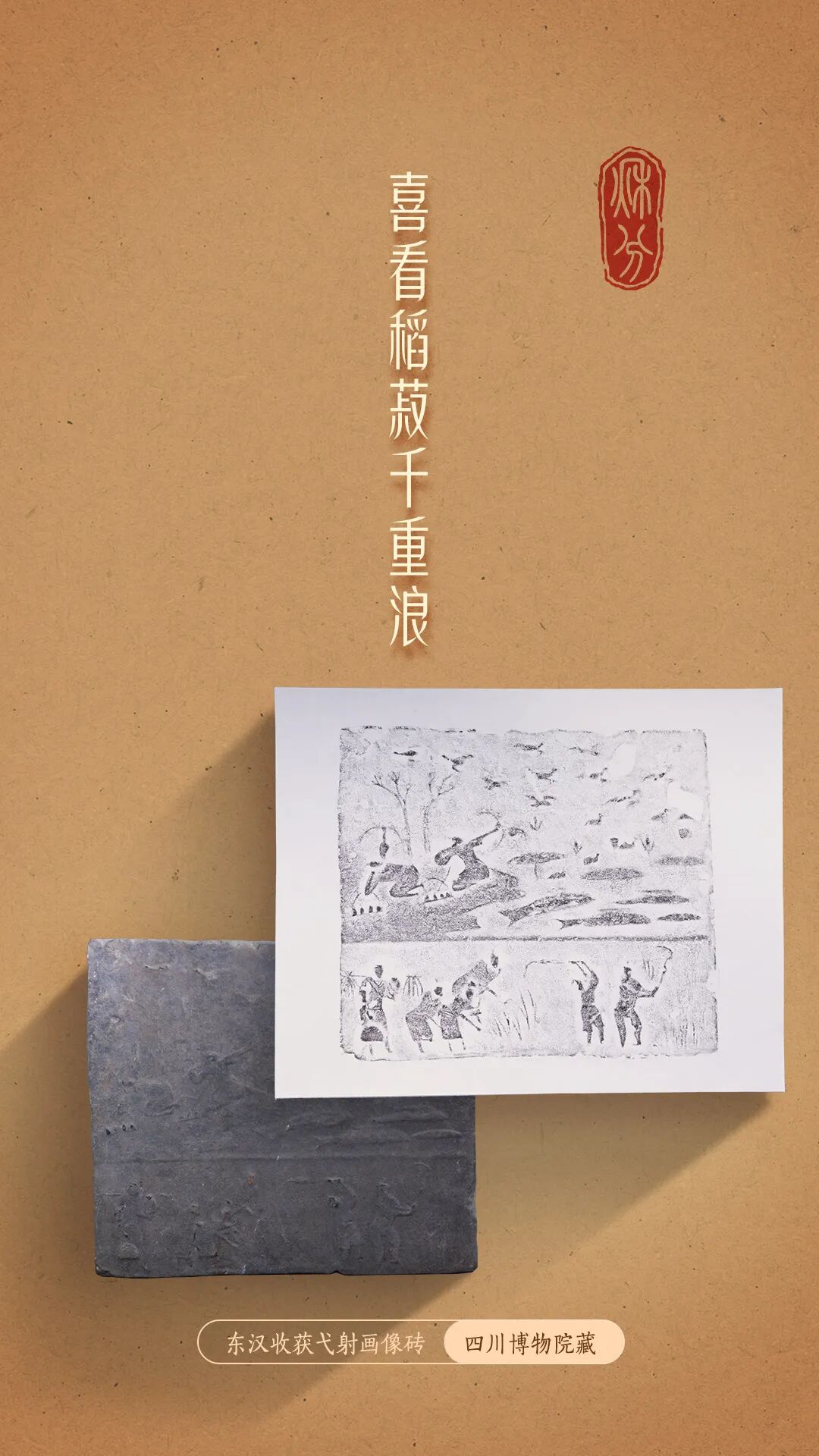 对美好生活的向往和对辛勤劳动的尊重,是中华民族自古至今的共同追求。在四川博物院的展厅里,陈列着一件东汉时期的画像砖——收获弋射画像砖。这件长45.6厘米、宽39.6厘米的文物,将两千多年前的蜀地田园生活定格在一方泥土上,成为我们窥探汉代社会生活的珍贵窗口。
