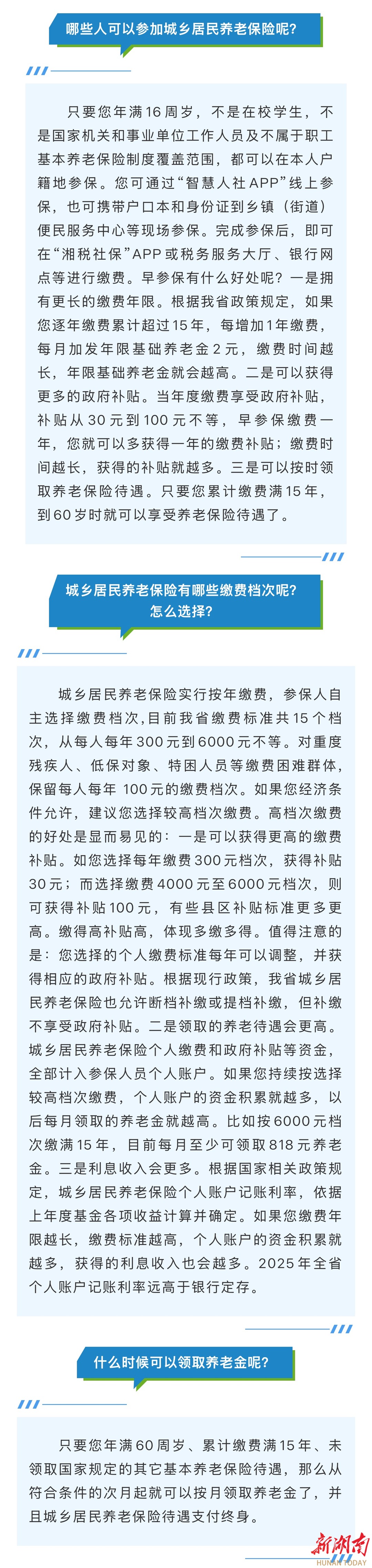 城乡居民养老保险是国家建立的基本养老保险制度之一,也就是大家以前所说的“新农保”,以保障参保城乡居民老年基本生活为目标,具有“多缴多得、长缴多得、政府保障、支付终身”等惠民特点。(文案 沈春红 音频 杨柳彬 设计 万璇)