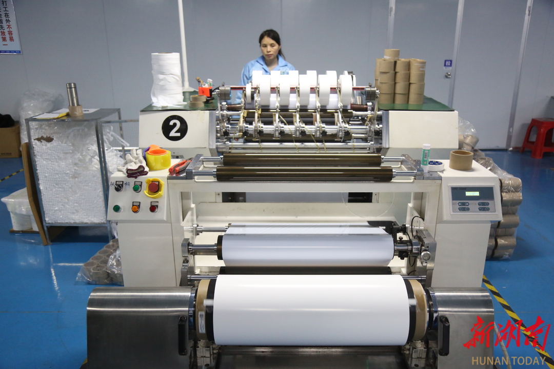湖南锂都新材料有限公司员工操作电池隔膜机器。通讯员 摄