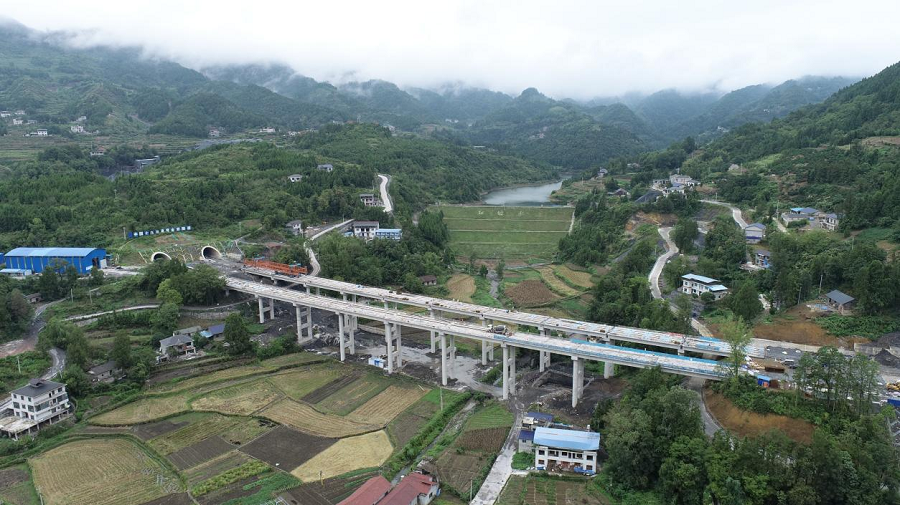 新湖南客户端9月23日讯(通讯员 郭韦瀚)9月18日,随着最后一片预制T梁架设完成,十九冶重庆公司承建的G59高速项目张官段乐圆新村大桥顺利贯通。