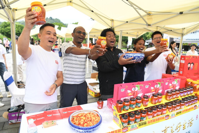 (外国友人捧起湖南辣椒产品。湖南日报全媒体记者 田超摄)