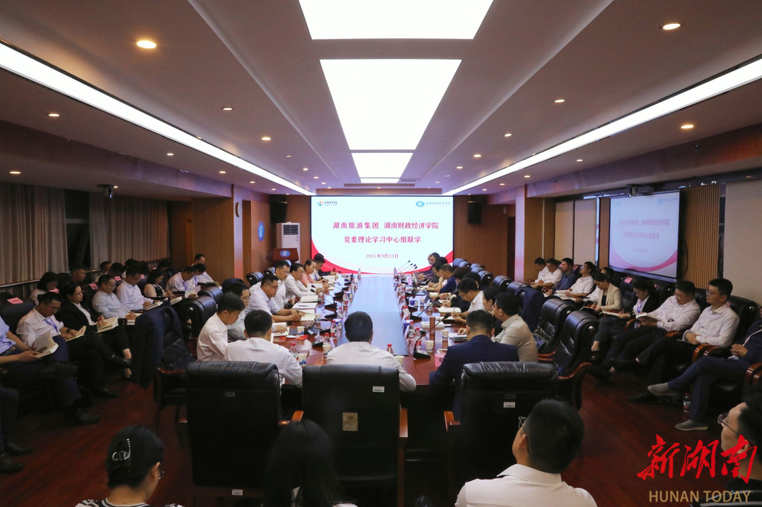 9月23日,湖南财政经济学院党委和湖南旅游集团党委开展理论学习中心组联学。湖南旅游集团党委书记、董事长杨宏伟主持会议并讲话。校党委书记易棉阳作《习近平谈治国理政》第五卷专题辅导。校党委副书记苏玲,党委委员、宣传部、统战部部长文炳勋,湖南旅游集团党委副书记、副董事长、总经理陈华军,党委副书记、职工董事李域与其他党委班子成员参加并作交流发言。