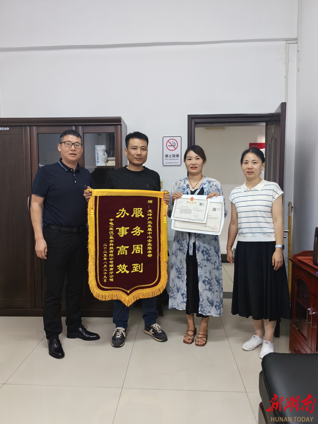 中电(武汉)数字科技有限公司湖南分公司代表给龙岭产业发展中心企业服务部送锦旗,感谢园区的贴心服务。