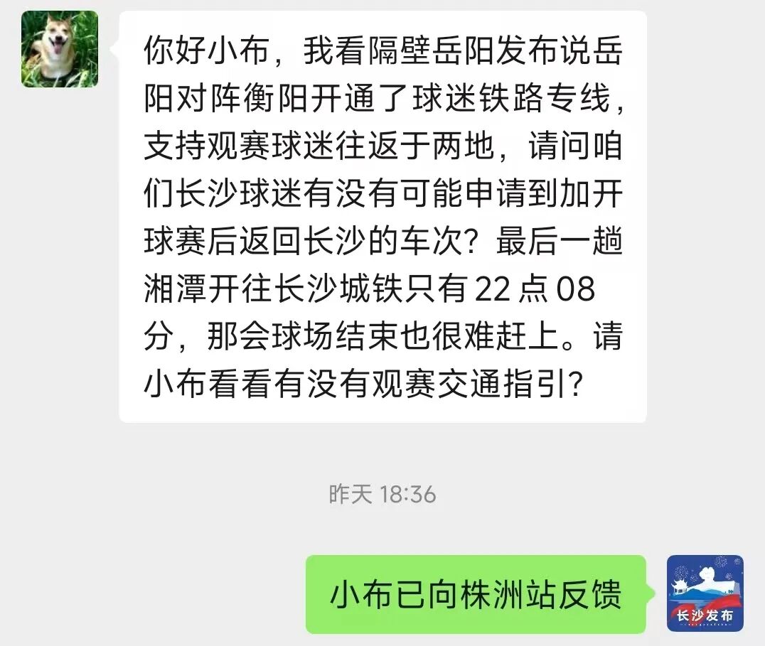 “能否加开球赛后返回长沙的车次?”