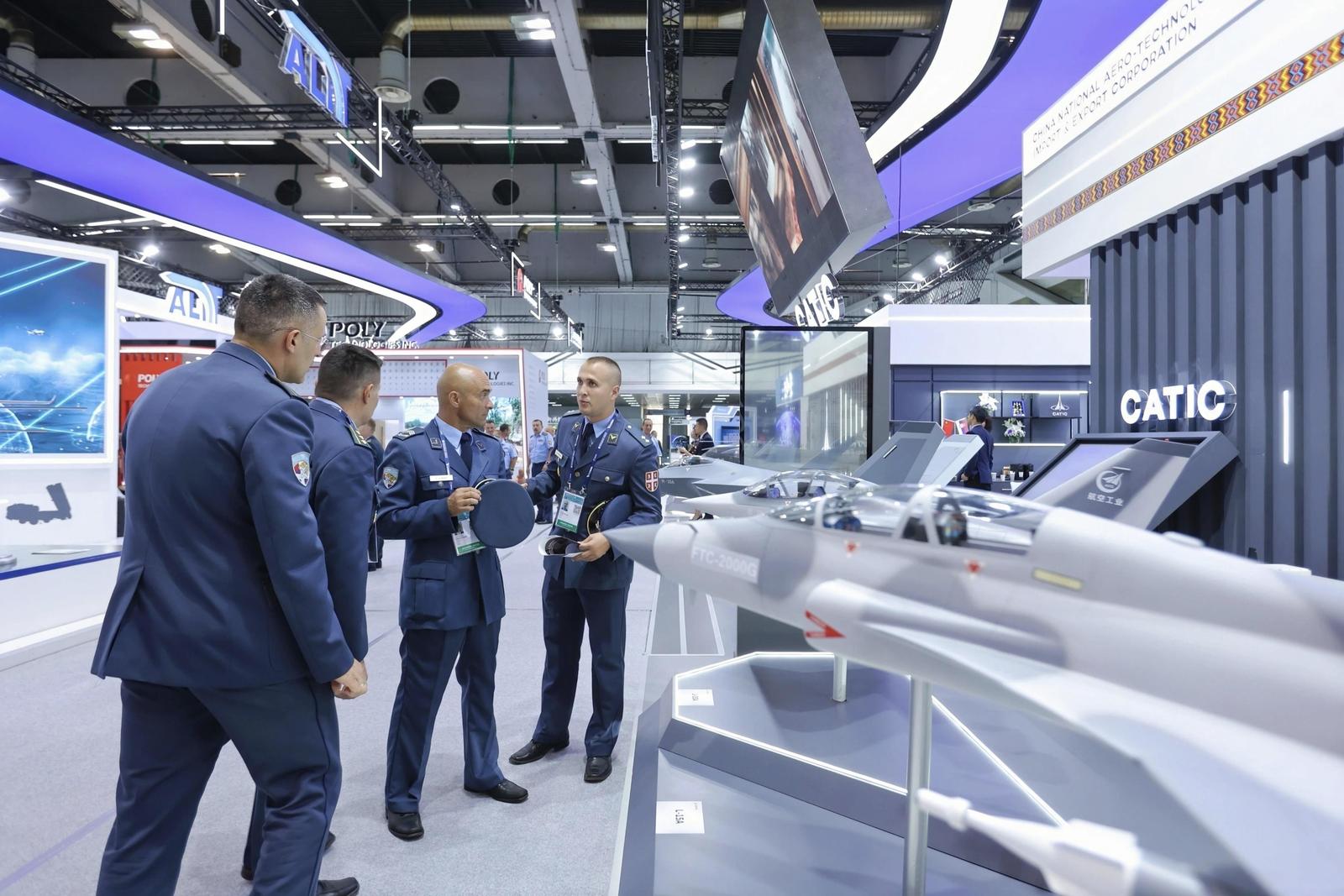 多个国家和地区的军政代表团相继到访航空军贸展区,就双方关注的议题开展深入交流。
