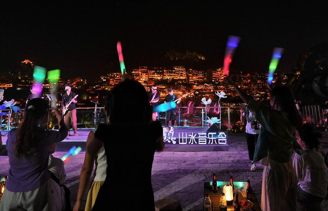 荧光棒在夜色里挥舞,观众跟着节拍摇晃