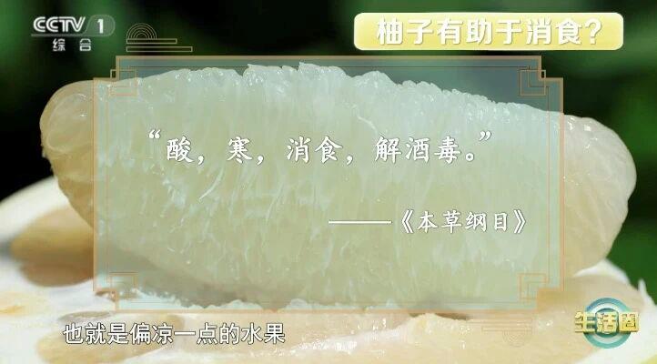 《本草纲目》中记载,柚子肉“酸、寒、消食、解酒毒”。对于孕早期女性来说,还能缓解孕吐。