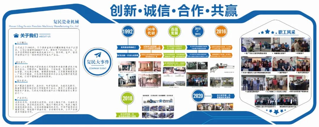 如今,复民机械的海外客户已覆盖巴基斯坦、孟加拉、哈萨克斯坦、乌兹别克斯坦、越南等国家和地区的日用陶瓷骨干企业,累计提供了大量的成套陶瓷生产装备,成为我国向海外出口陶瓷装备的主要企业之一。