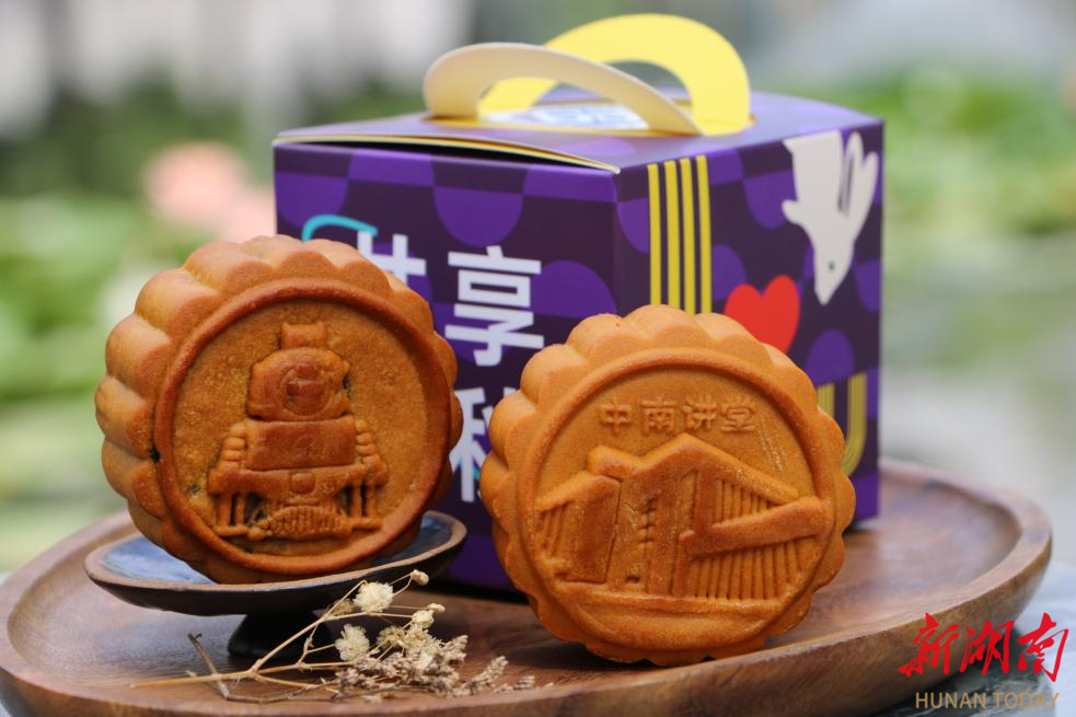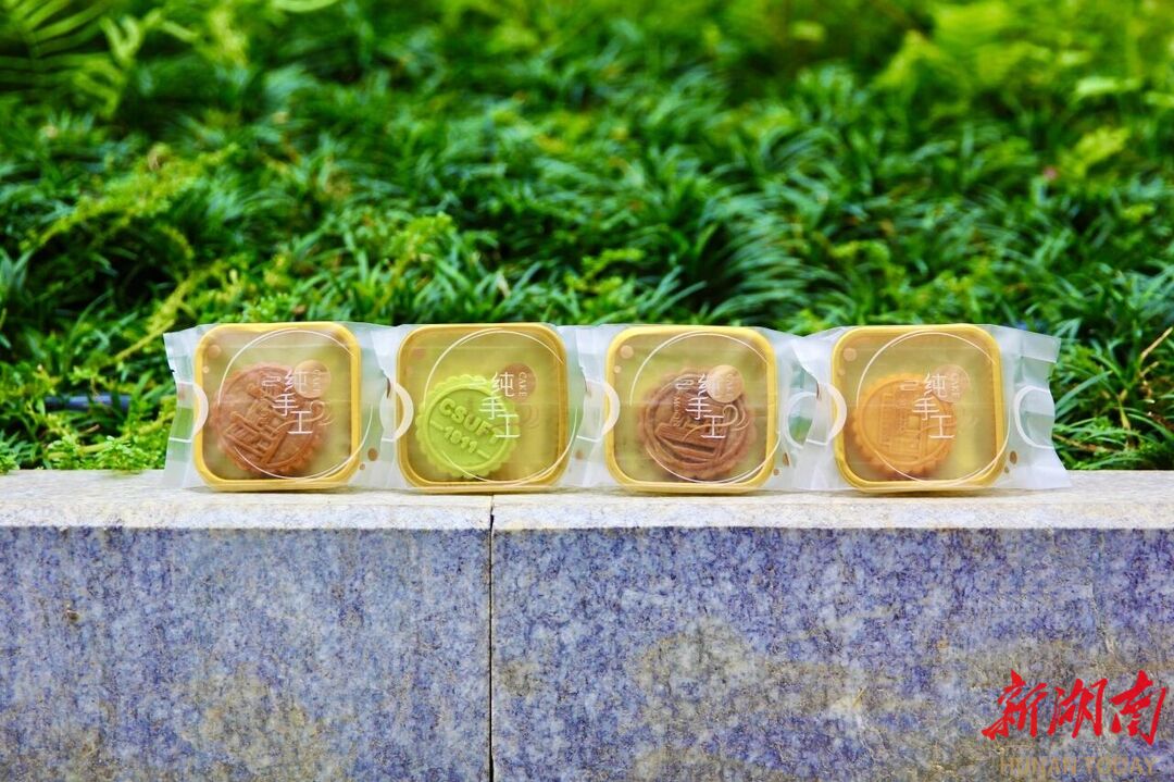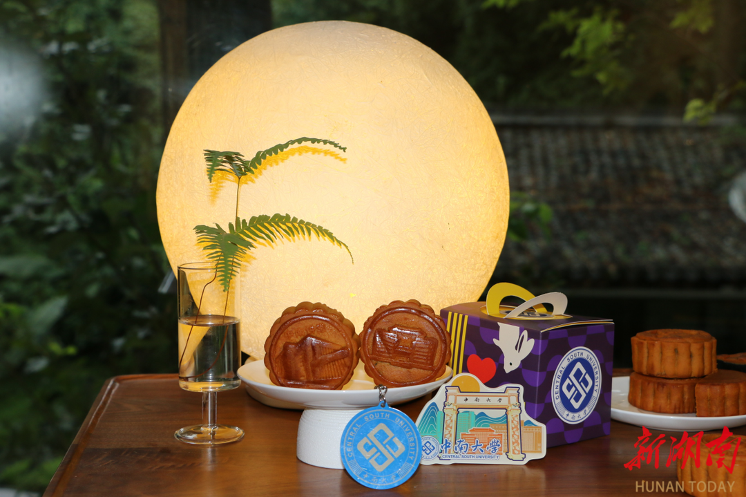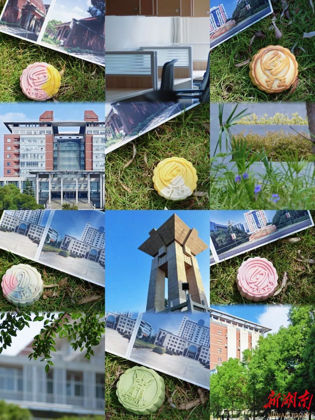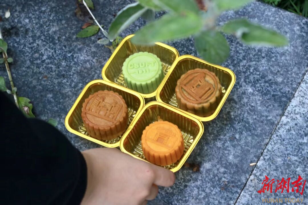 月饼上刻着火车头、湘雅红楼、图书馆、荷花亭这些校园地标