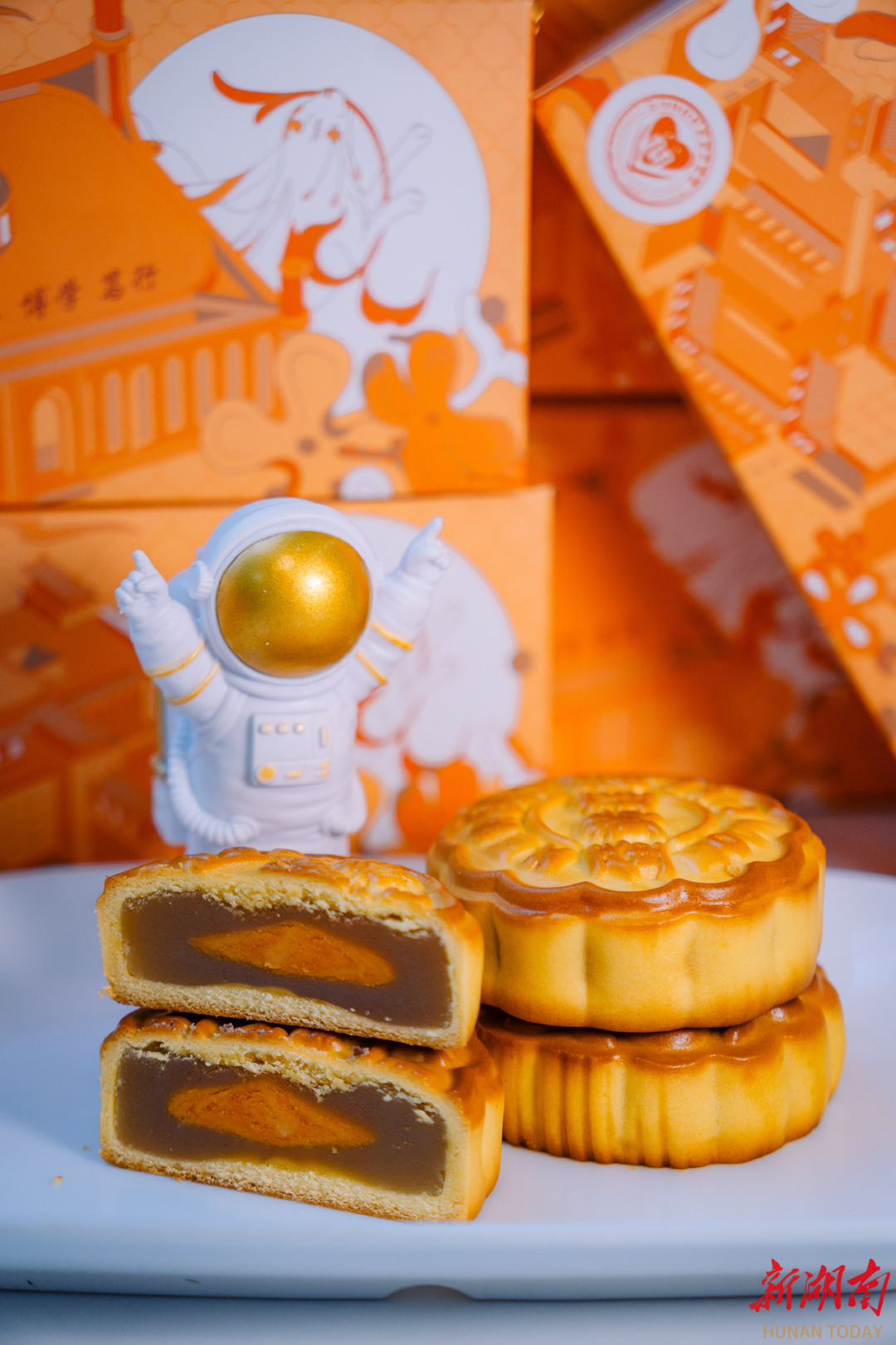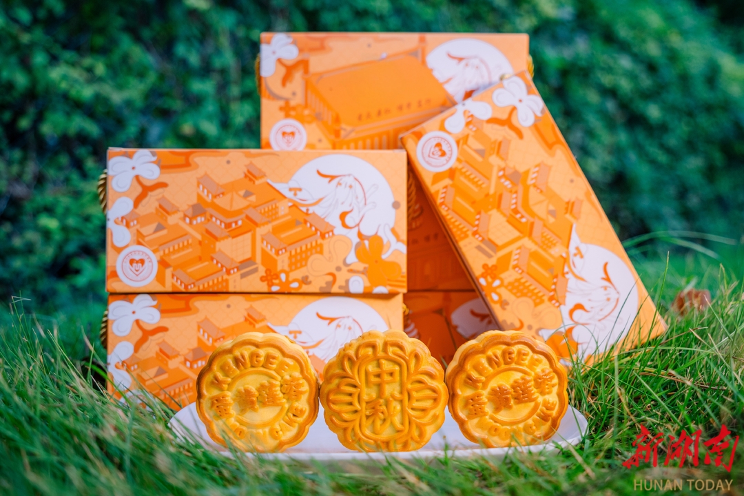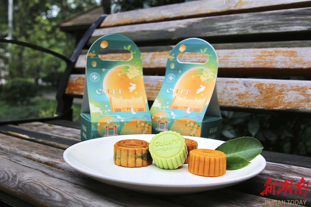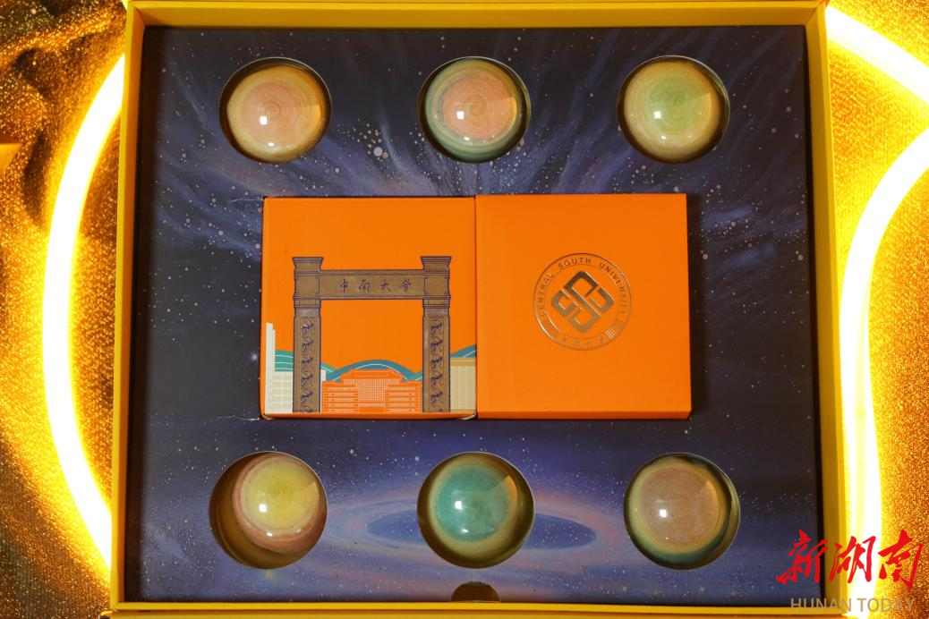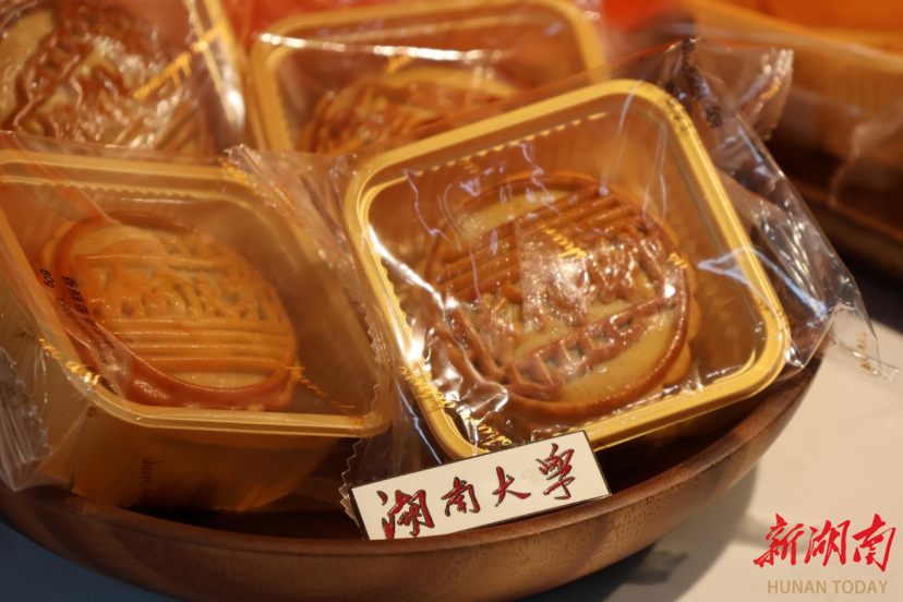 月饼上刻着火车头、湘雅红楼、图书馆、荷花亭这些校园地标