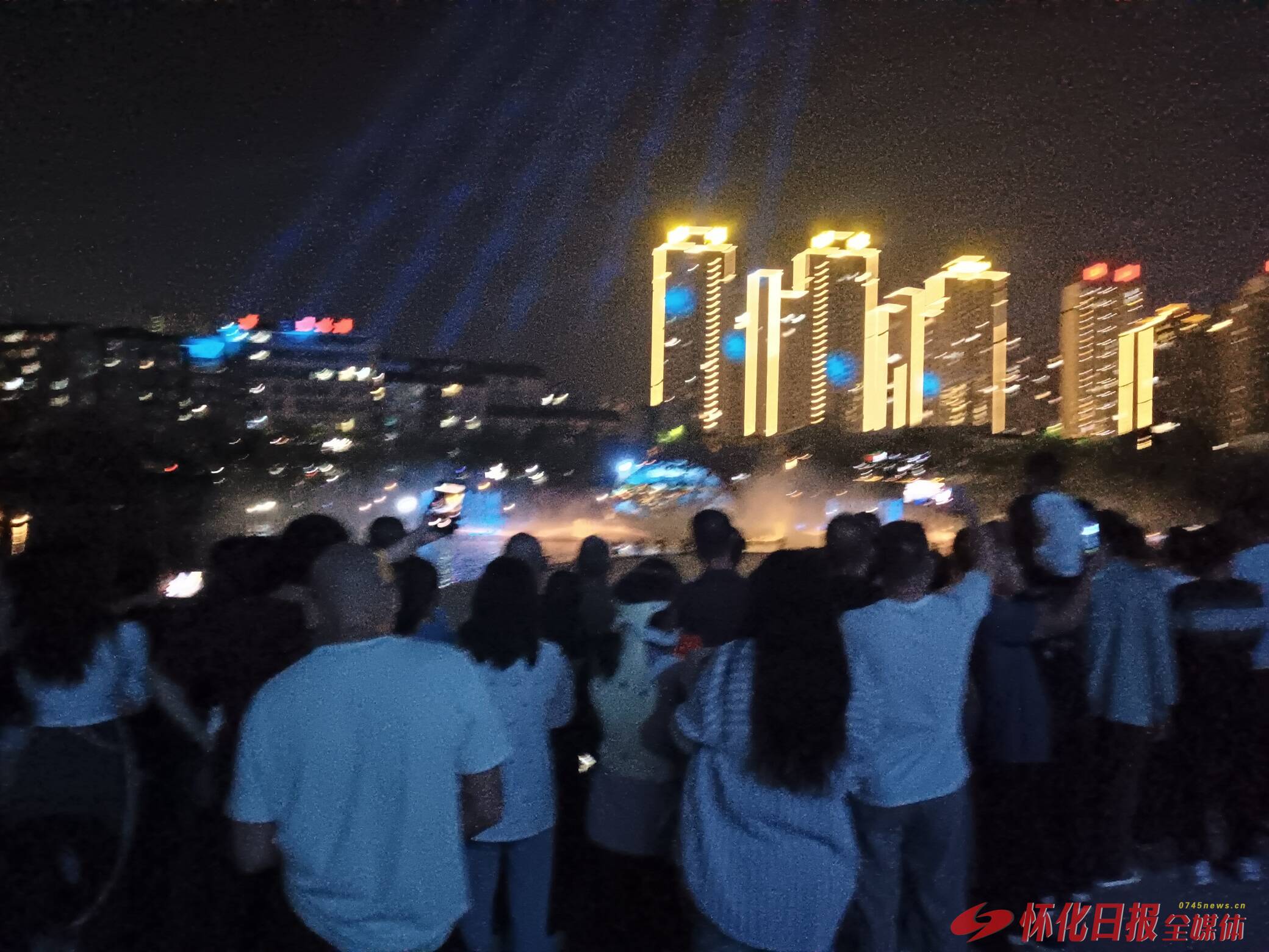 (市民观看水幕电影。怀化日报全媒体记者 李普兵 摄)