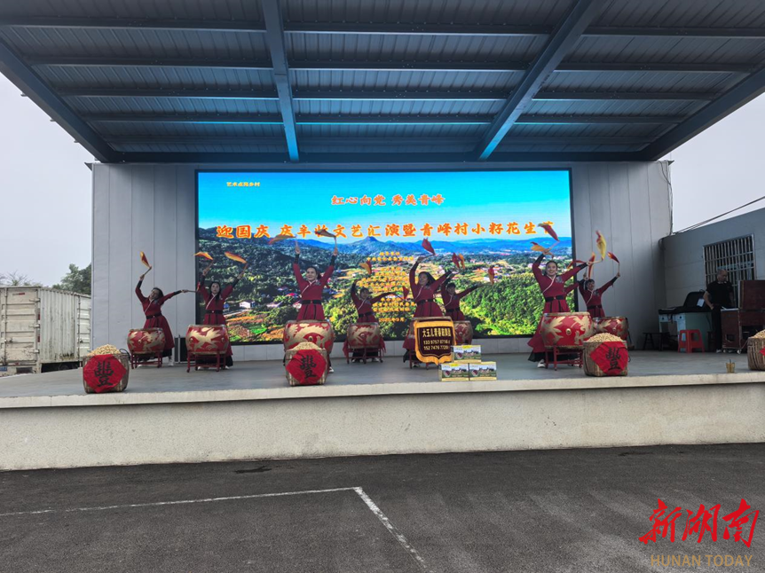 湖南日报•新湖南客户端9月30日讯(通讯员 徐炽)9月29日,“红心向党秀美青峰”迎国庆庆丰收文艺汇演暨青峰村小籽花生节活动,在安化县乐安镇青峰村文化大舞台举行。活动通过文艺表演及特色农产品展示的形式,展现青峰村在乡村振兴战略指引下的崭新风貌与丰硕成果。