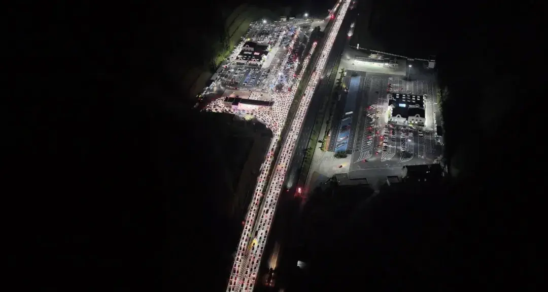深圳游客开车去郴州旅游,无人机拍下高速路震撼“彩色灯带”:一头是故乡,一头是远方