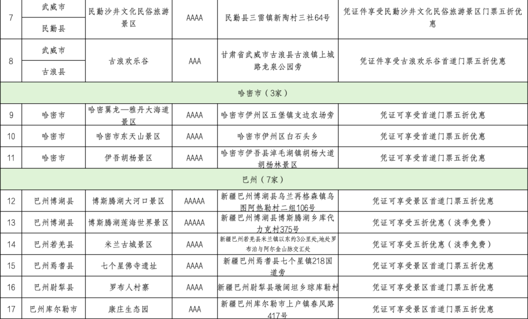 “丝路名城汇 一证游美景”优惠政策参与景区名单