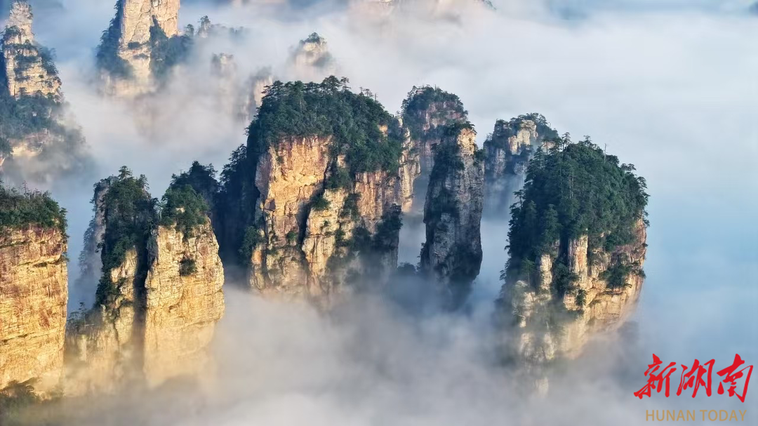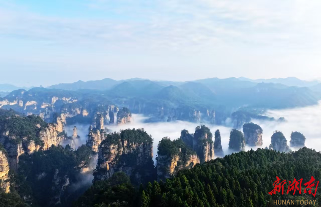 湖南日报·新湖南客户端10月5日讯(通讯员 邓道理)仙境张家界,峰迷全世界。10月5日,国庆假期第五天,湖南张家界国家森林公园峰起云间的秋日胜景惊艳八方游客。