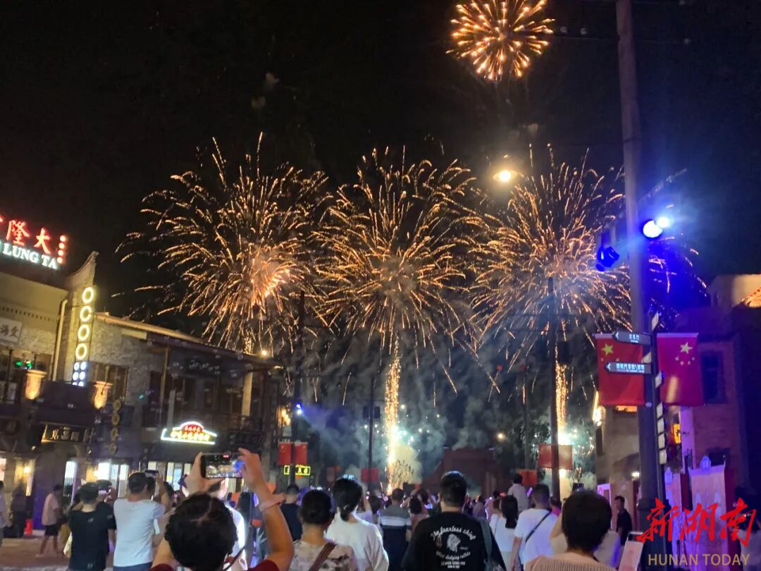本次活动精心策划了多项兼具观赏性、互动性与仪式感的环节,营造出浓厚的节日氛围。其中,每晚定点燃放的国庆主题烟花秀成为最受期待的亮点。金色的焰火在复古建筑群上空绽放,与沿街悬挂的国旗相互映衬,构成一幅震撼人心的夜景,将现场气氛推向高潮。