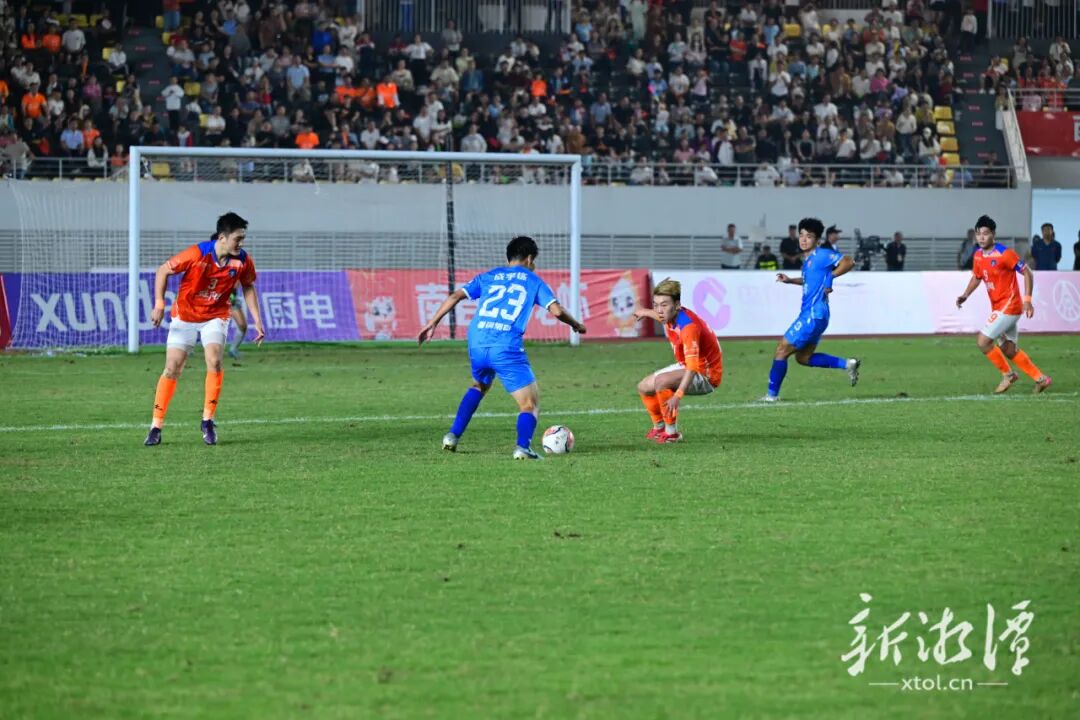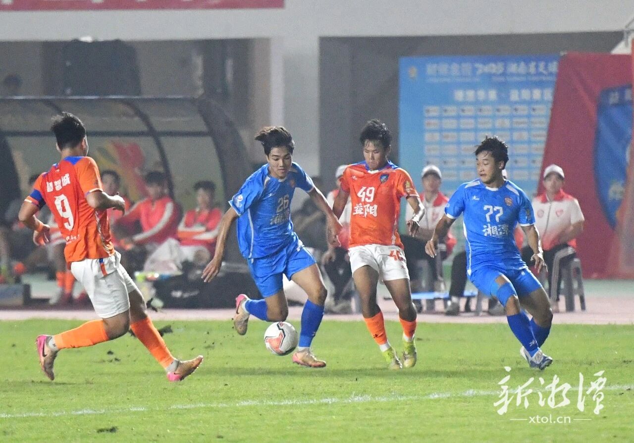 下半场,双方易边再战。益阳队显然不甘心接受一场平局,而湘潭队在攻入开赛以来首粒“运动战进球”后士气大涨,在稳固防守的同时全力反击。双方在场上势均力敌,也都创造出不少进球机会。