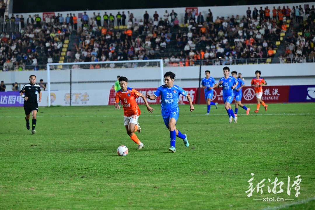 湖南日报·新湖南客户端10月12日讯(李涛)10月11日晚,益阳奥林匹克公园体育场灯光璀璨,“湘超”联赛第五轮激情上演,客场作战的湘潭队拼尽全力,仍遗憾地以1:2的比分不敌对手益阳队。尽管比赛结果不尽如人意,但比赛过程中湘潭队的斗志受到现场球迷的肯定。