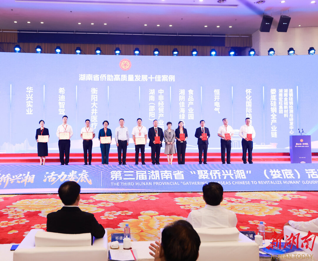 新湖南客户端10月13日讯(通讯员 周佩)10月10日,第三届湖南省“聚侨兴湘”活动在娄底举行。来自50个国家和地区的约300名海外嘉宾、侨商侨领齐聚一堂,以“侨”为桥搭建合作平台,汇聚全球侨胞力量助推湖南高质量发展。活动中,长沙市侨界代表团携优质涉侨企业及重点合作项目精彩亮相,成果尤为亮眼,共促成13个涉侨项目签约、4家长沙涉侨企业入选湖南省“侨助高质量发展十佳案例”,充分展现长沙侨界助力全省经济高质量发展的强劲实力。