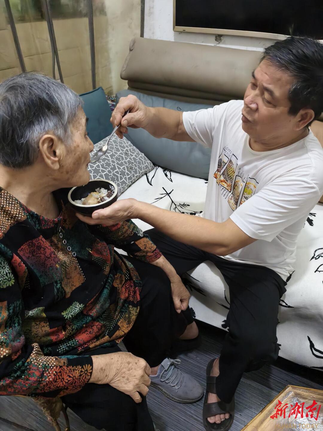 十六年间,他成了妻子的“专属护工”。每天清晨五点,天还未亮,他就起床忙碌。先是帮妻子翻身、擦身,换上干净的衣物,再小心翼翼地将妻子抱到轮椅上,整理好床铺。接着,他快步走进厨房,熬制软烂的米粥或米糊,搭配切碎的蔬菜和肉末,用勺子一点点喂给妻子。喂饭过程格外耐心,妻子咀嚼慢,他就等;妻子偶尔呛咳,他立刻停下,轻轻拍打后背,直到妻子平复。