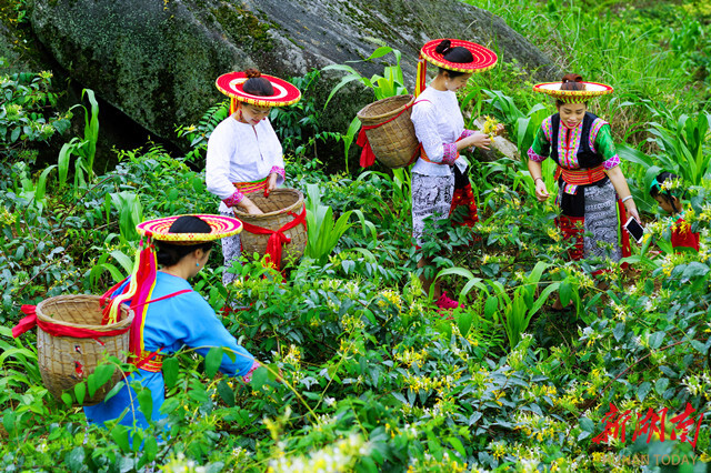 【花瑶姑娘采摘山银花。】