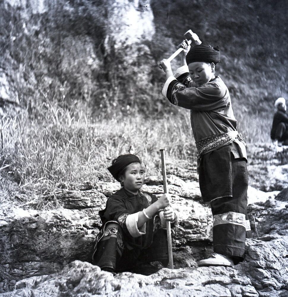 妇女工地打炮眼(1971年,龙赞才摄于保靖水田河)