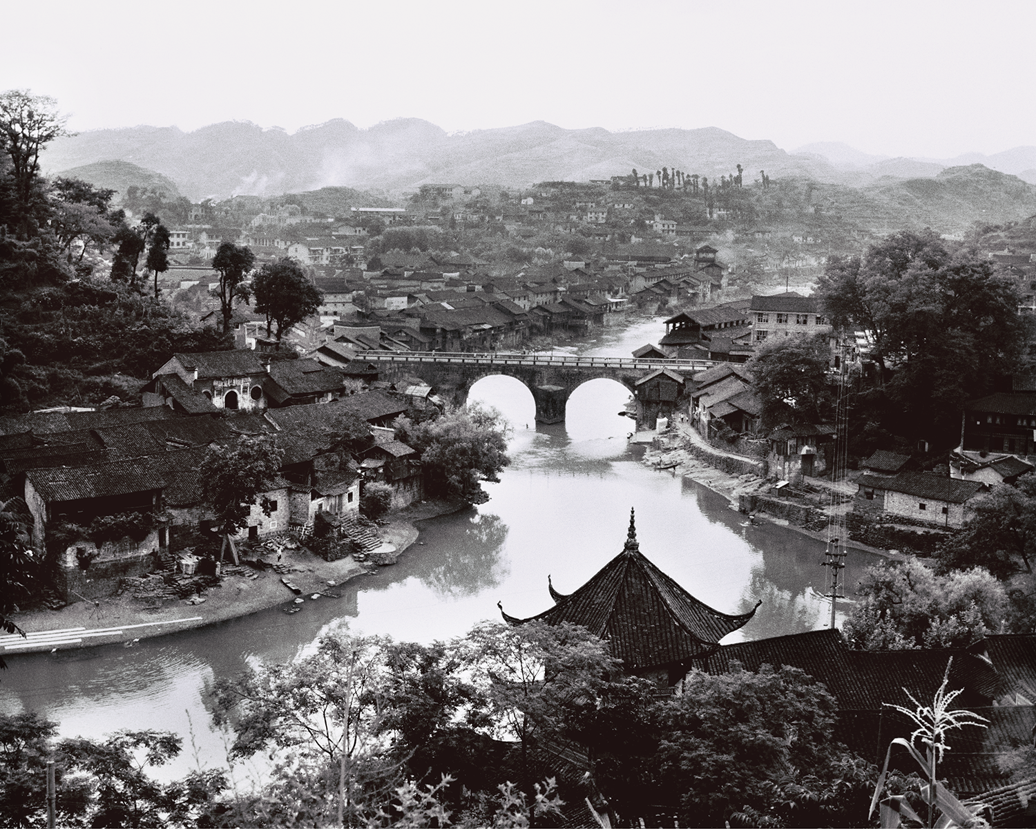 海量图片的生产和神速传播,改写了传统民俗摄影格局。在人们的观念中,传统民俗摄影应该是量少图精。从事民俗摄影的人,应该静下心来观察与思考,注重图片叙事的文化信息表达。新冠疫情过后,文旅产业进入复苏期,各地频频出招吸引客源,激活人气,行政驱动热闹异常。从湘西凤凰古城、矮寨大桥、芙蓉镇、八面山等景点旺季人流可以看到,游客外出游玩,几乎人手一部智能手机,沿途即拍即发,图的是互动、开心。手机摄影功能升级换代,以其拍摄便捷、调图顺畅、网上传播快速迎来了全民摄影时代。华为、维沃等厂商在手机摄影性能上不断改进,出片争奇斗艳,掀起一波接一波的换机消费热潮。从网络传播看,湘西民俗摄影出彩图片和故事组图,不少是游客用手机随意捕捉拍摄的。一些流量大,构图生动、网民叫好的民俗场景,亦非专业者所为。旅拍等新生行当和业态,借助民俗元素异军突起。景区租借服装照相服务,早已有之。意想不到的是,这些年发展成为一个服务升级的产业。前两年,凤凰同志告诉我,凤凰古城这些年的旅拍门店已发展到1000多家,从业人员5000多人,旺季生意火爆。旅拍消费者,多为年轻人。而穿着民族服装、佩戴银饰,选择民俗元素场合取景,很受年轻人的追捧与喜爱。这些同志还介绍,凤凰旅游客源也在发生变化。平常时段,散客和自驾游占了客源的60%多,旺季和节假日占到80%,旅行社的团队客,下滑到只占20%左右。过来依靠旅行社组图的传统营销模式,难以为继。龙山县举办的八面山帐篷音乐节、自行车赛,保靖县的“村厨”“祭山”,永顺县芙蓉镇的土家族“舍巴节”,花垣县的“从文读书季”“三省赶大集”、苗族“赶秋节”,古丈县涵盖茶文化非遗展演、茶旅嘉年华、云摄影大赛等内容的茶祖节,凤凰县的苗族银饰服饰文化节、“四月八跳花节”,吉首市的“百狮会”、苗鼓文化展演,泸溪县的“村舟国内邀请赛”、浦市中元节巡游等,吸引众多游客参与互动、景点打卡、跟踪追拍,呈现了农文旅体多元混搭的跨界玩法。保靖县与贵州“村超”建立战略合作关系,2024年举办首届“村厨争霸”大赛,湘西州有115支队伍参加,吸引不少摄影人围观拍摄,大赛带动县里接待游客401万人次,实现旅游收入40.81亿元。看来,体验式、沉浸式旅游与民俗文化展示融合,农文旅体康养融合,成为近年吸引客源、牵引消费升级、撬动旅拍兴起的又一个兴奋点。 1958年的吉首乾州万溶江畔(陈廷茂《湘西百年影像实录》)