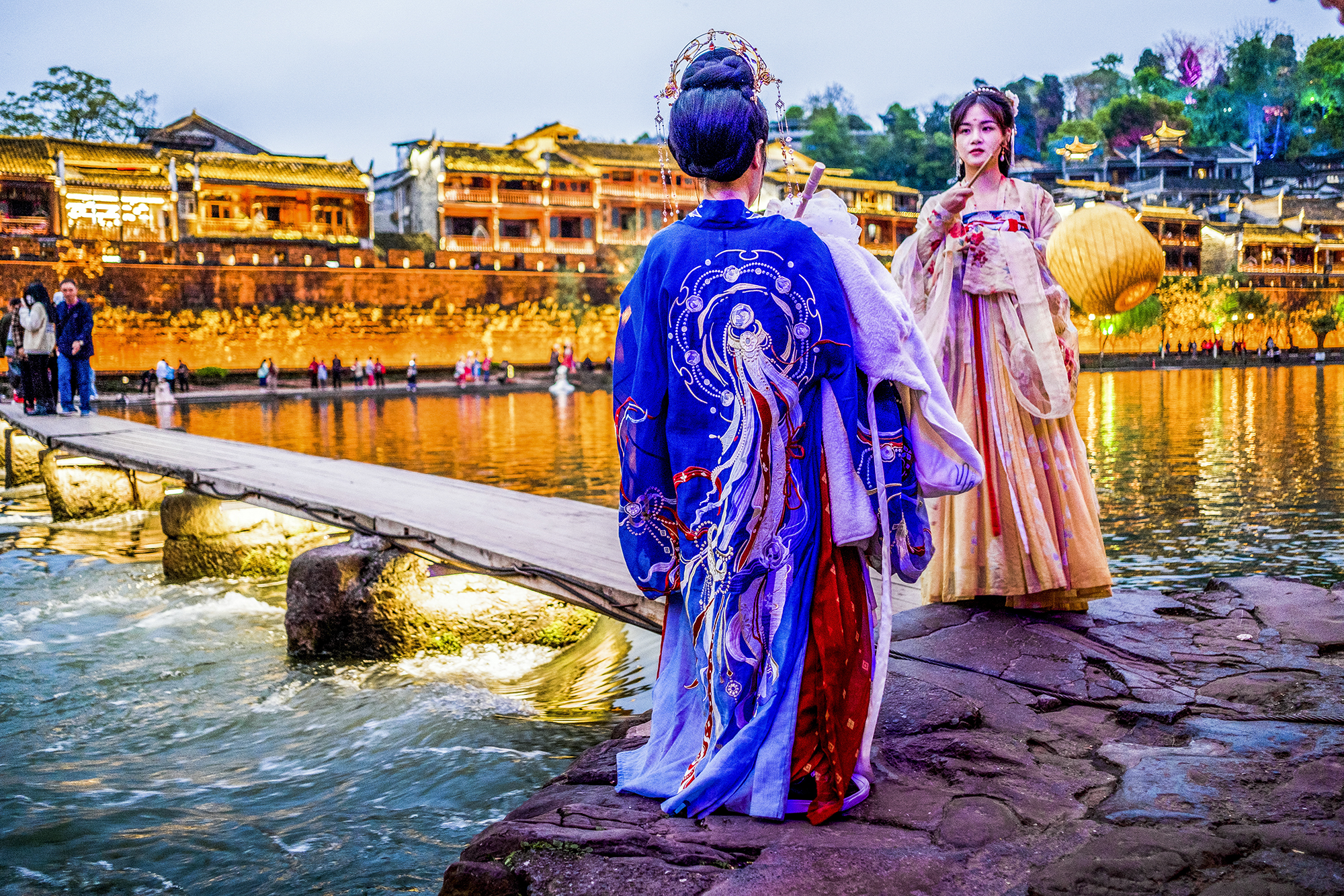入夜,凤凰沱江旅拍: 汉唐遗风(方文森摄)